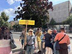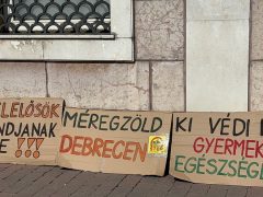 A debreceni kormányablak előtt tüntettek péntek délután a Mikepércsi Anyák a Környezetért Egyesület és Zebraszerda aktivistái, valamint szimpatizánsaik.