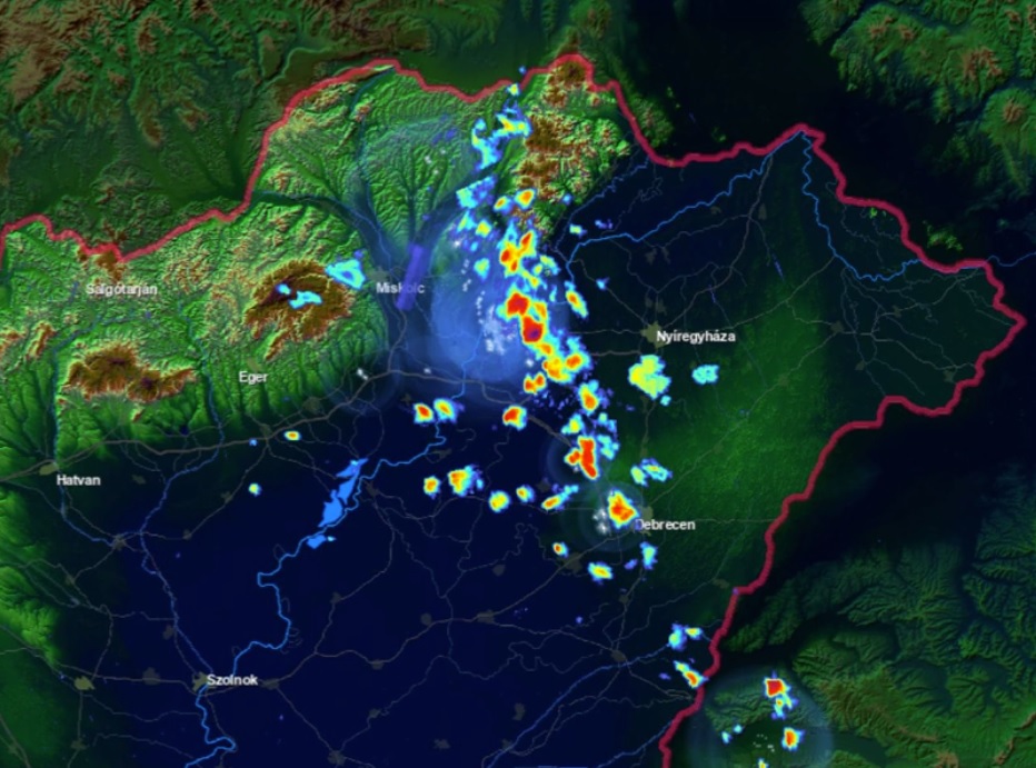 Zivatarok pattantak ki Hajú-Bihar megye fölött vasárnap délután. Az Időkép radarja szerint Debrecen sem marad ki az égi áldásból.