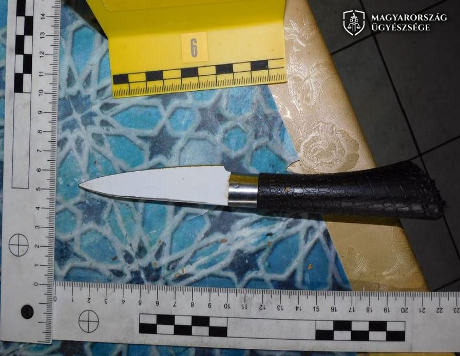 A Hajdú-Bihar Vármegyei Rendőr-főkapitányság által a szemle során készült fotókon az elkövetéshez használt kés látható.