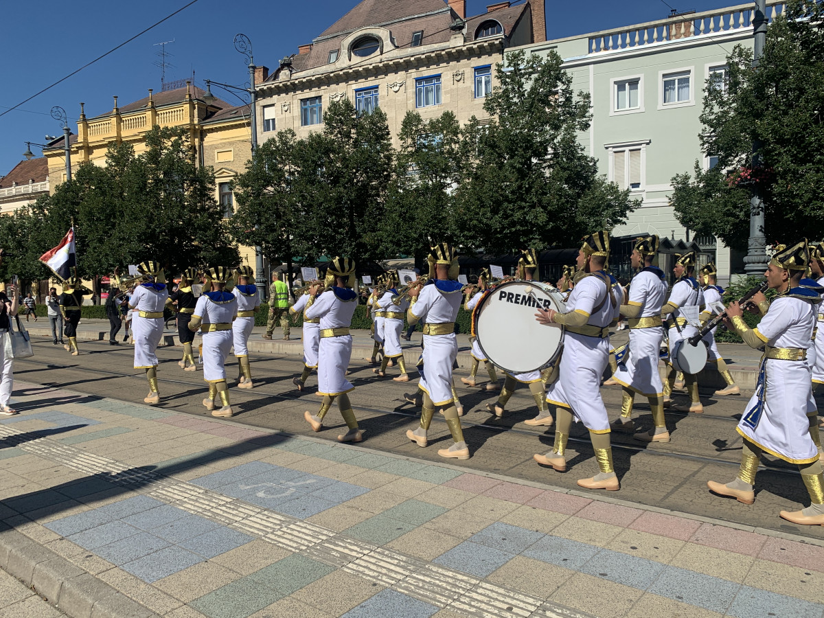 Pénteken a románok, olaszok, egyiptomiak, törökök és a nyitónapon már megcsodált csehek és szlovákok is ünnepélyesen vonultak a Kossuth térre és egészen majdnem este kilenc óra magasságában hagyták csak abba a zenélést.Kétségtelenül az egyiptomiak fellépő dressze volt a leglátványosabb a pénteki nap, hiszen fáraóknak öltöztek be és nagy meglepetésre a “Föl föl vitézek” című magyar dalt játszották a debreceniek nagy örömére.