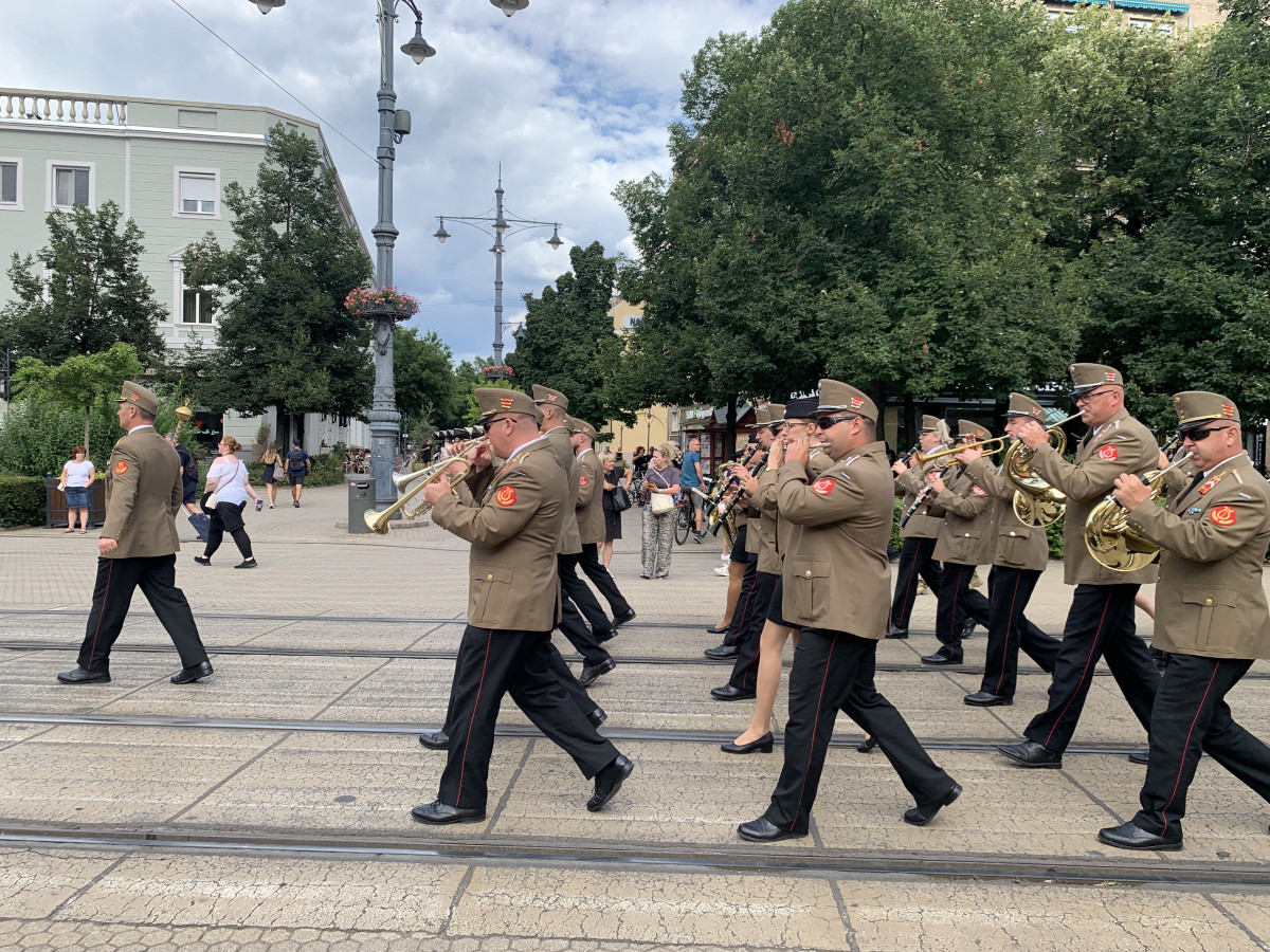 Az első nap őrülete után egyedi módon folytatódott a XXII. Nemzetközi Katonazenekari Fesztivál, miután csütörtökön és pénteken is a Csonkatemplomtól masíroztak a fellépő zenekarok, így többek között az osztrák, lengyel, horvát és a holland zenekar is vonult amolyan bemelegítő jelleggel a Piac utcán miközben zenéltek is az utca emberének is.