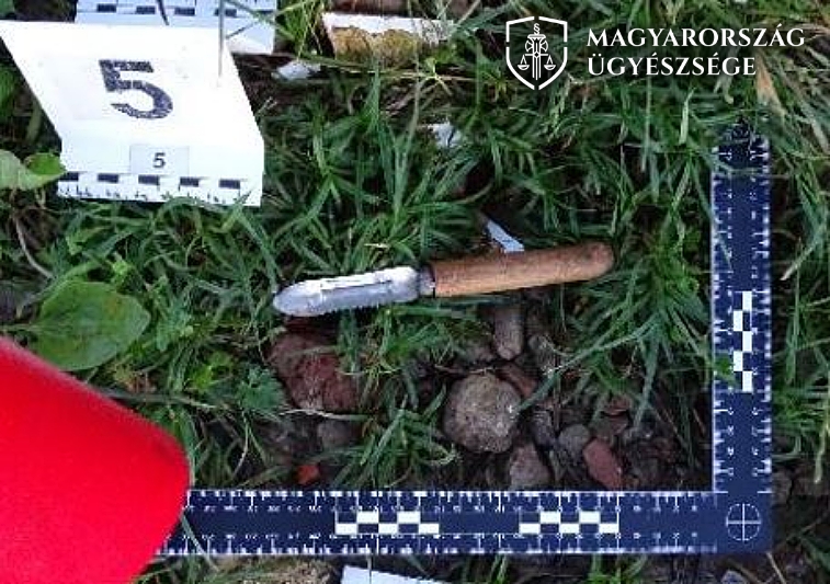 A Hajdú-Bihar Vármegyei Rendőr-főkapitányság által készített fényképeken bántalmazás eszközei, az idős férfi mankója és a kés látható.