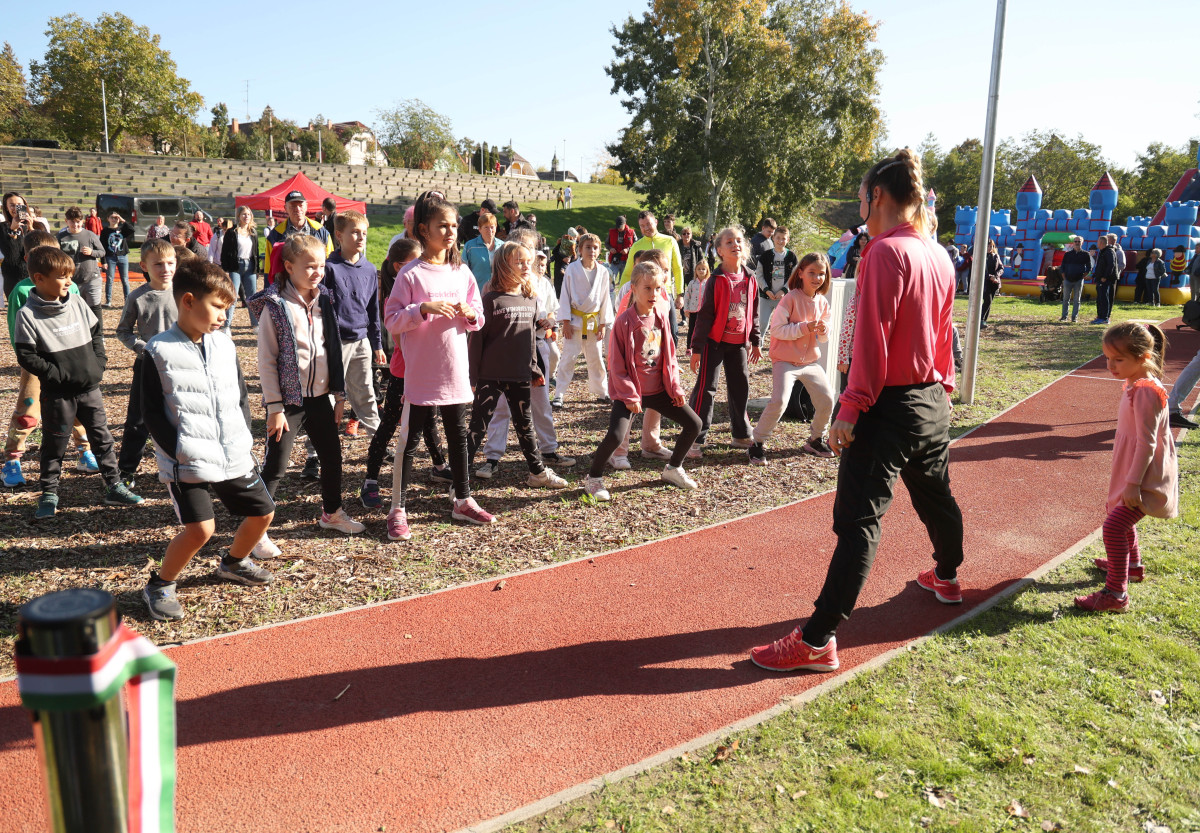 A nemzeti színű szalag átvágásában közreműködött Nagy Péter súlyemelő olimpikon és Pollák Lilla.
