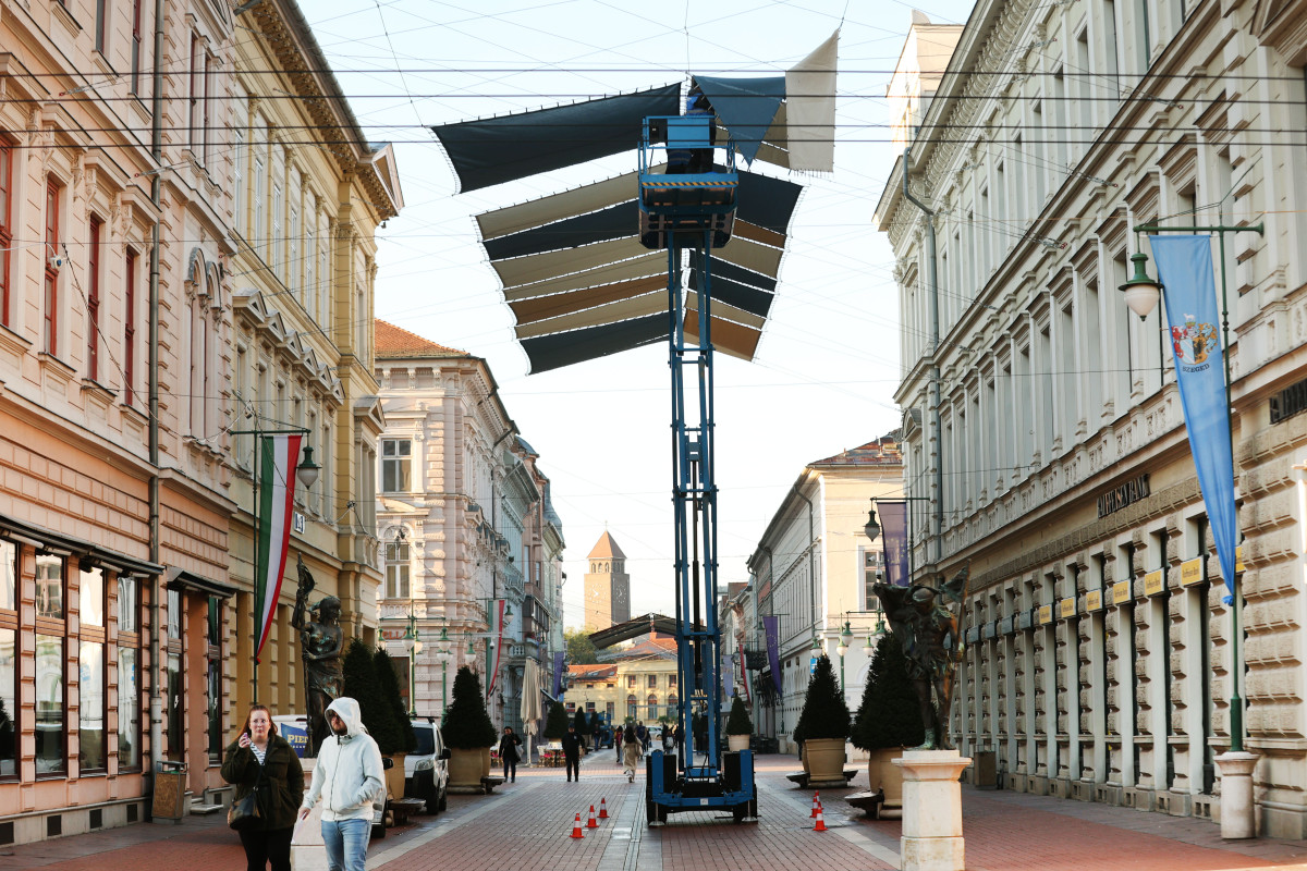 Lassan, de biztos ünneplőbe öltözik Szeged. Mi sem bizonyítja ezt jobban, mint, hogy a Kárász utcán a napvitorlák lekerültek, az égősor pedig fel.