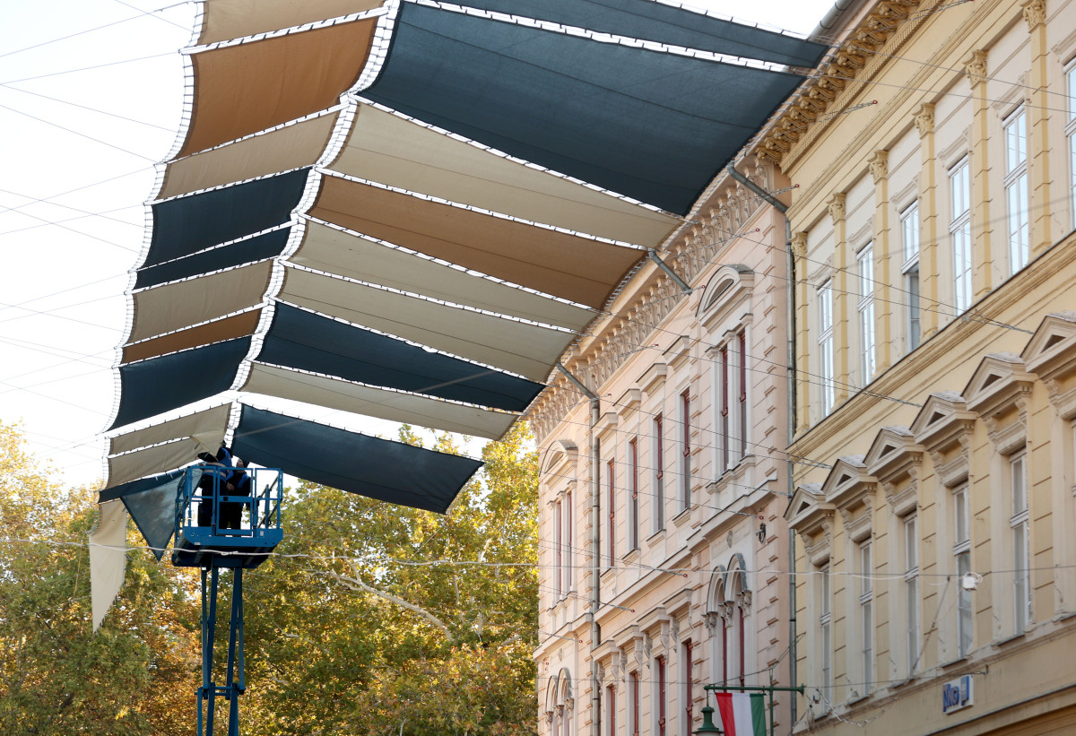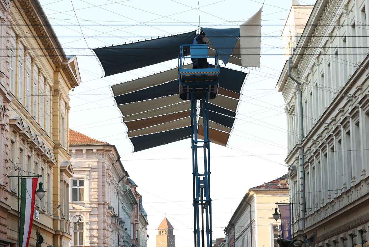 Alig ért véget a nyár, a Szegedi Környezetgazdálkodási Nonprofit Kft. munkatársai már a karácsonyi dekoráció elhelyezésén dolgoznak. A napvitorlákat a múlt héten elkezdték leszerelni, a karácsonyi égősort pedig felrakni.