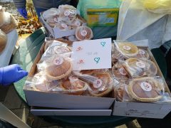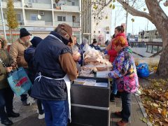 Ezért a hideg ellenére ma is vártuk vendégeinket, ahogy tesszük 2011-óta minden hónap utolsó vasárnapján. Az első vendégek már a kezdés előtt másfél órával megérkeztek. Az ételosztás végére mind a 150 adag töltött káposzta elfogyott. Bőségesen jutott mindenkinek kenyér, péksütemény. Ma ismét adtunk pizzát, és most először muffint is kapott minden vendég.