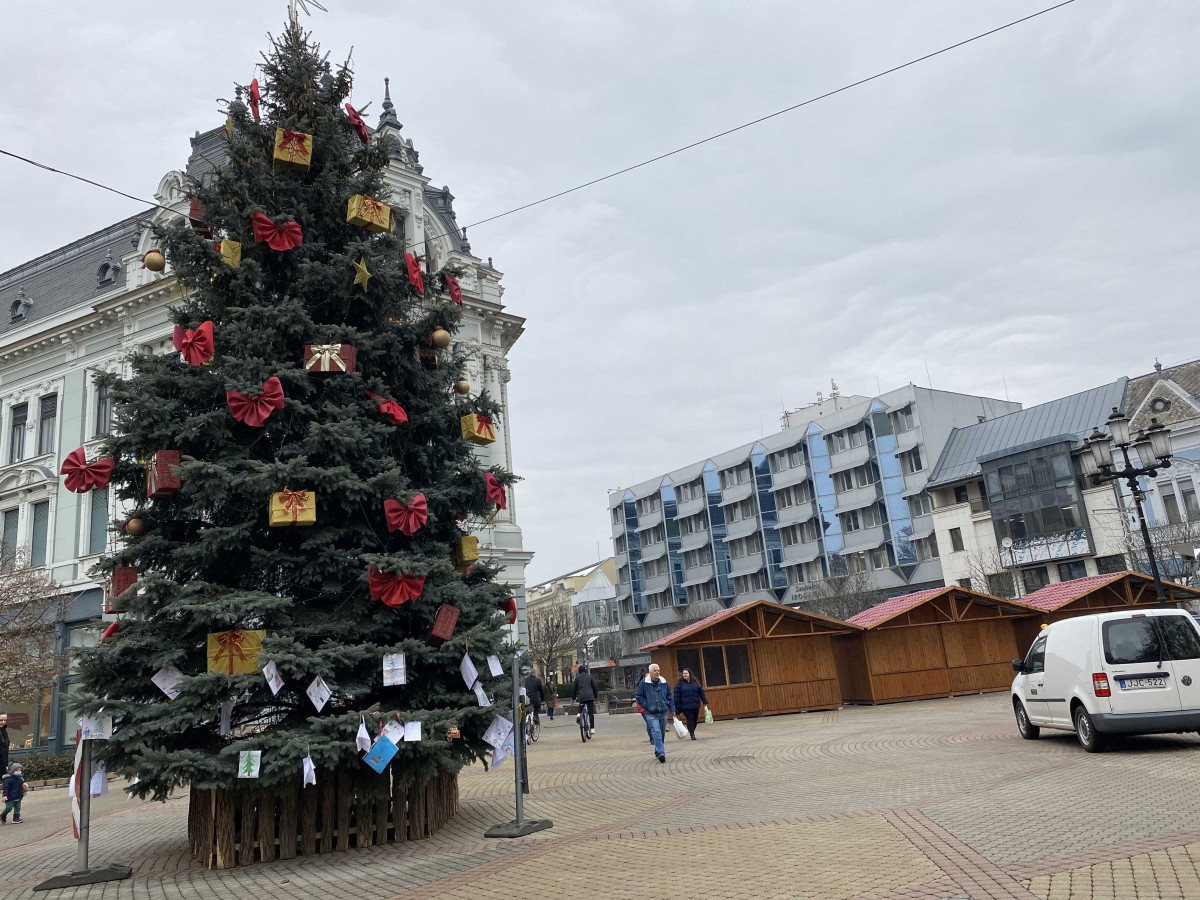 Napról napra egyre szebb lesz Nyíregyháza belvárosa: a fa feldíszítve már a helyén áll, a faházak is lassan ünnepi díszben tündökölnek, ahogy a fák és villanyoszlopok is.