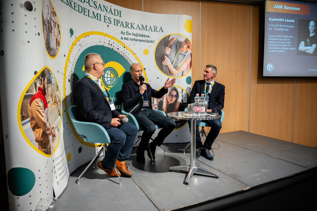 A program JAM Session-nel zárult, amelyen Palotás Sándor moderálásával különböző megoldandó helyzeteket vázolt fel a résztvevőknek Gyimóthi Lászlóval, a Scolia Technologies Kft. tulajdonosával és Gellért Ákossal, a Naturtex Kft. egyik tulajdonosával közösen. Saját tapasztalataik mentén mondták el, hogy hogyan érdemes reagálni egy-egy váratlan helyzetre, szituációra, milyen módon célszerű megbirkózni a cég elé gördülő folyamatos kihívásokkal.