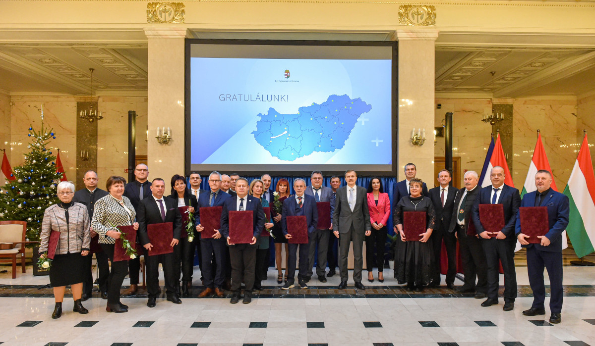Réthy Pál, a Belügyminisztérium közfoglalkoztatási helyettes államtitkára díjakat adott át a Start Plusz közfoglalkoztatási programok megvalósítása során kiemelkedő szakmai munkát végzett települések és példaértékű munkát végző közfoglalkoztatók részére.