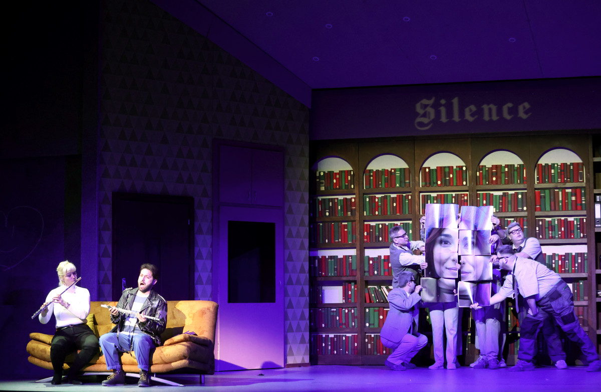A fegyvertelen, menekülő Tamino herceg összecsuklik üldözője, a sárkány előtt, ám bukása pillanatában kiválasztottá válik: az Éj királynője meglátja benne fogvatartott lányának, Paminának majdani megmentő hősét. Kap csodálatos eszközöket – de tud-e játszani a hangszeren? Segítő társ is szegődik mellé – de támaszkodhat-e rá? A küldetés sikeréhez saját képességeit kell beteljesítenie, önnön magát kell meghaladnia. Számos veszélyen, tűzön és vízen át azonban talán elérheti a kettős jutalmat: a szerető társat és a tudásnak, a szellemnek gazdagságát. Mire oda eljut, talán az is kiderül, a meggyötört anya számára valóban gyermeke-e a legfontosabb, és hogy a főpapi szigor nem óvó szeretet-e inkább.