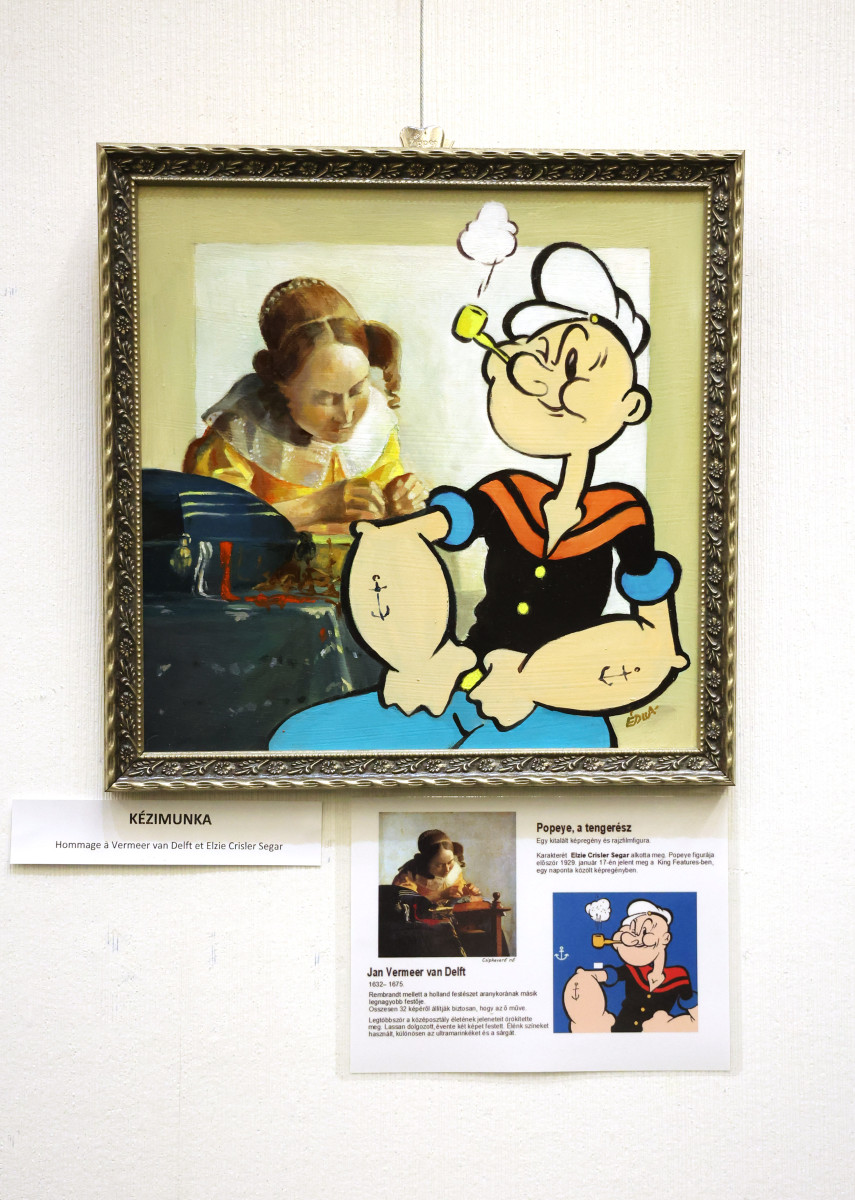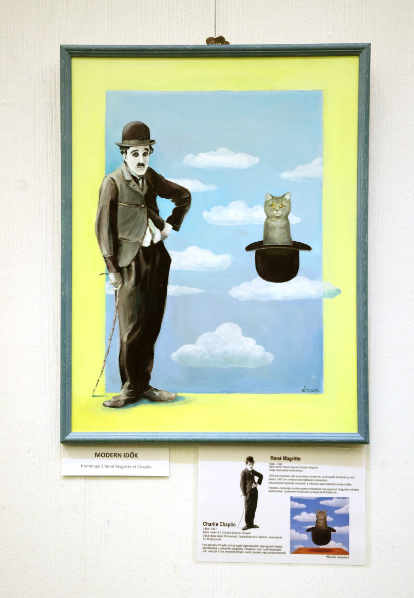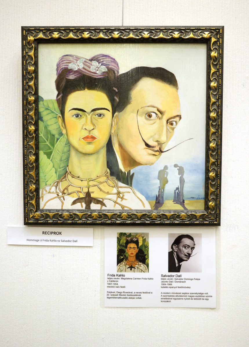 „Művészcsaládba születtem 1959-ben, Szegeden. Édesapám Szűcs Árpád restaurátor, festőművész, édesanyám Sz. Kováts Margit rajztanár, festőművész. Szüleimmel ellentétben engem nem a színek, hanem mindig a vonalak vonzottak. Karikaturistának vallom magam, bár a munkám nagy részét könyvek és újságok illusztrálása teszi ki. Édesanyám halála után megörököltem a festékeit. Egy idő után úgy éreztem, hogy nem száradhatnak be a tubusai. Így kezdtem festeni. Pár éve találtam meg karikaturistaként az utamat a festészetben. Hommage-okat készítek Nagy alkotók, híres alkotások újragondolásával. Ezen a kiállításon festmények és tollrajzok lesznek láthatóak” – ismertette röviden útját a festőművész, akit a tárlat megnyitása előtt Szónoky Miklós geológus, nyugalmazott egyetemi docens kérdezett.