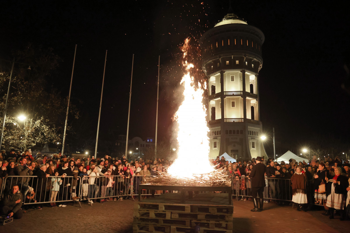 Szeged, Szent István tér, télbúcsúztató, máglya elégették, télbanya, kiszebáb