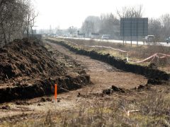 – A beruházás keretében 2×2 sávra bővül az 5. számú főút, M43 autópálya és az ELI-ALPS lézeres kutatóközpont körforgalom közötti szakasz. A fejlesztés során kiépül az M43 autópálya északi alcsomópontjában az ötödik ág, valamint az M43 autópálya déli alcsomópontjában létesülő, városi irányú autópálya lehajtó ágat és az 5 számú főutat összekötő közvetlen csomóponti ág. A meglévő körforgalomból (Nagybani piac) új teherforgalmi bejárat, az ipari park bejáratához pedig új körforgalmú csomópont épül. A beruházás keretében új tengelysúlymérő öböl pár és buszöböl párok is létesülnek, illetve az 5 számú főút mellett az 502 számú főút és az M43 autópálya között, az autópálya alatti átvezetéssel, kerékpárút is épül. A projekt kapcsolódik az 502. számú főút új nyomvonalú szakaszának a megvalósításához, ezért az 5. számú és 502. számú főutak jelenlegi három ágú körforgalmi csomópontja négy ágúvá válik. A kivitelezési feladatokat a Colas Út Zrt. végzi – válaszolta kérdésünkre az Építési és Közlekedési Minisztérium Sajtóosztálya.
