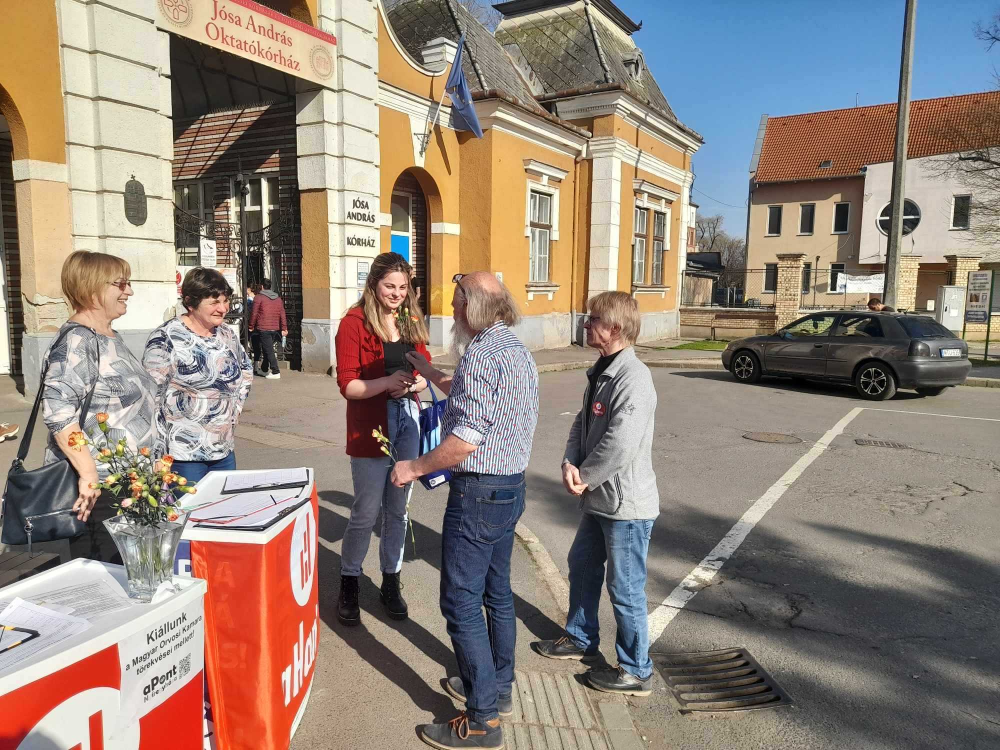 Délelőtt az erdei tornapályánál tartott nőnapi eseménynél települtek ki az aktivisták, ahol két fontos petícióhoz lehetett csatlakozni: az egyik a menstruációs szegénység ellen küzd, a másik pedig a Jósa András Oktatókórház gyermeksebészeti osztályának visszaállítását követeli – az ellátás “ideiglenesen” szünetel az intézményben. Az aktivisták egy-egy szál virággal kedveskedtek a pulthoz érkező érdeklődő és a petíciókat aláíró nőknek.