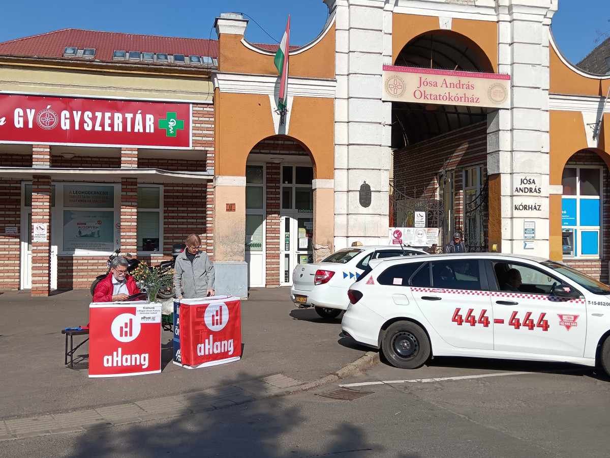 A délután folyamán a nyíregyházi aPont a Jósa András kórházhoz ment, ahol a Magyar Orvosi Kamara mellett álltak ki. Mint elhangzott ott: “fontos, hogy a jobb egészségügyi ellátásba beletartozzon, hogy mindenki hozzáférjen a szükséges egészségügyi szolgáltatásokhoz. Ne kelljen órákat utazni sem a szolgáltatás eléréséhez, sem a kórházi látogatások miatt!”