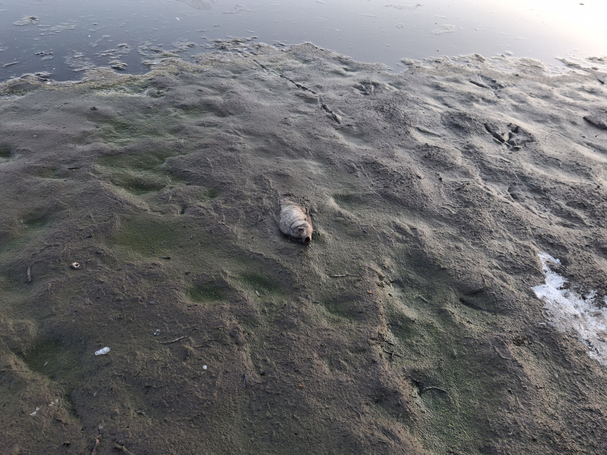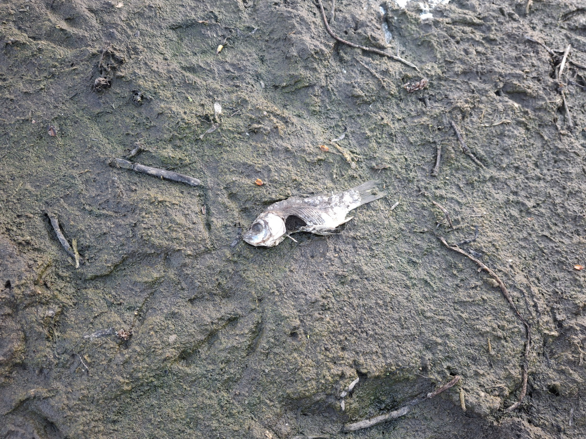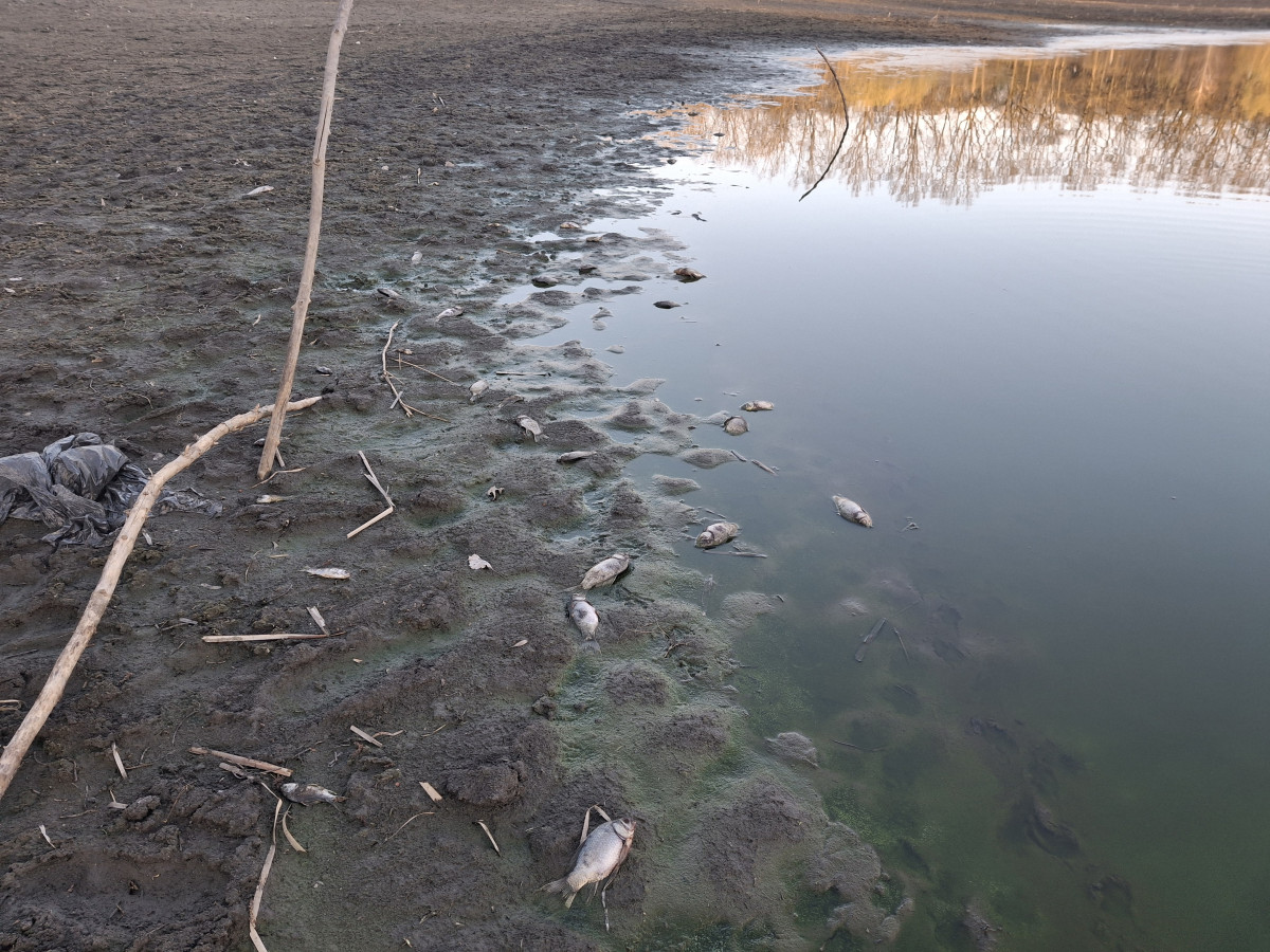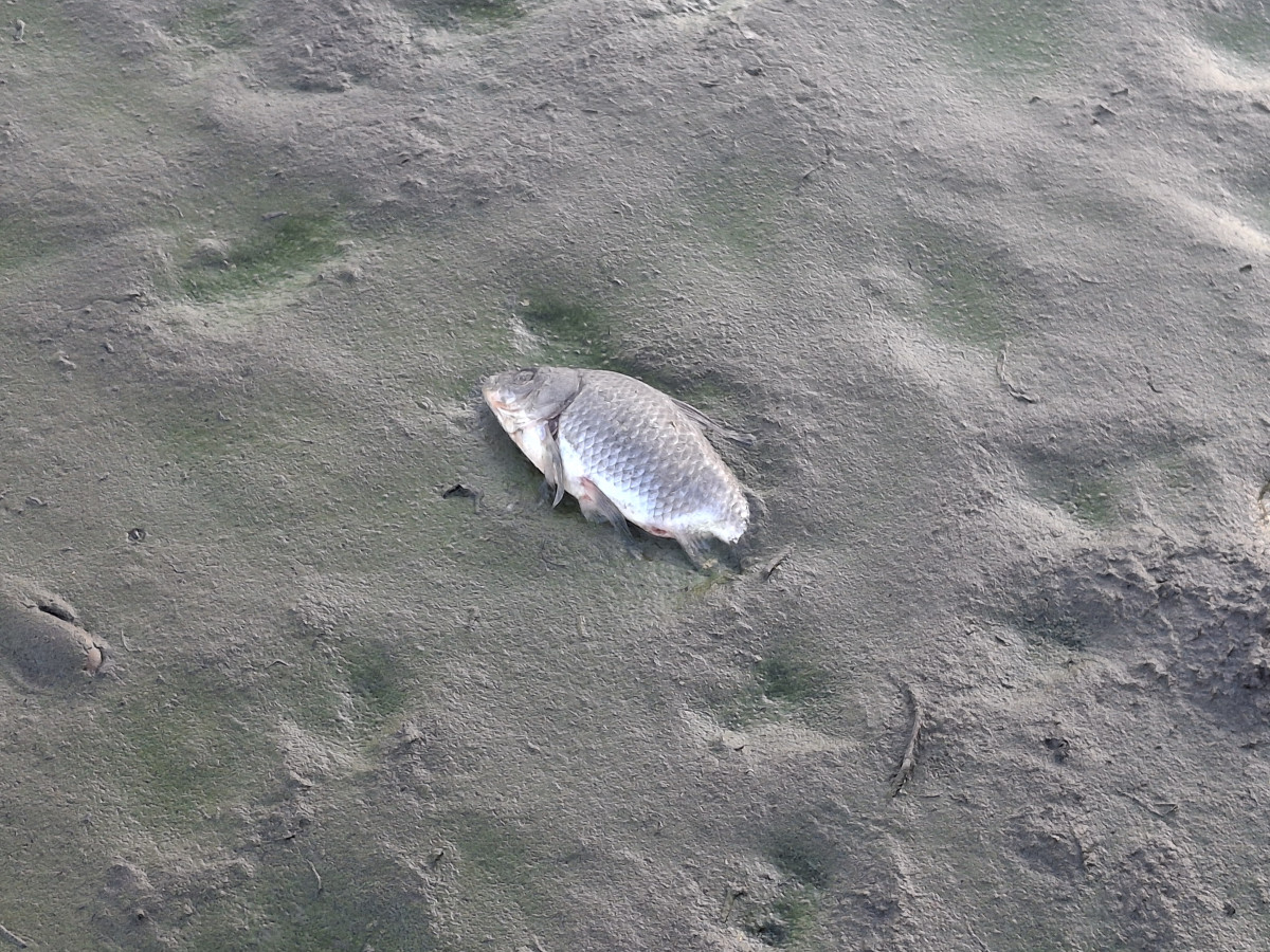 Nos, idén más a helyzet. A víz szinte teljesen eltűnt a mederből. A mutatóban megmaradt pocsolyákban agonizáló halak vergődnek, a víz és iszap bizonytalan határán ezüstkárászok, törpeharcsák (igen, ezek invazív fajok, de szenvedést akkor sem érdemelnek) tetemei és tavi kagylók maradványai jelzik, miféle sors vár itt az élővilág maradékára.