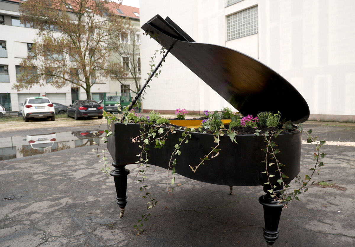Ezt követően a zongorát letakarították, majd lefestették, szigetelték, beborították a közepét lemezzel, tele rakták virágfölddel, és beültették virágokkal. A közepén pedig egy madáritató is helyet kapott.