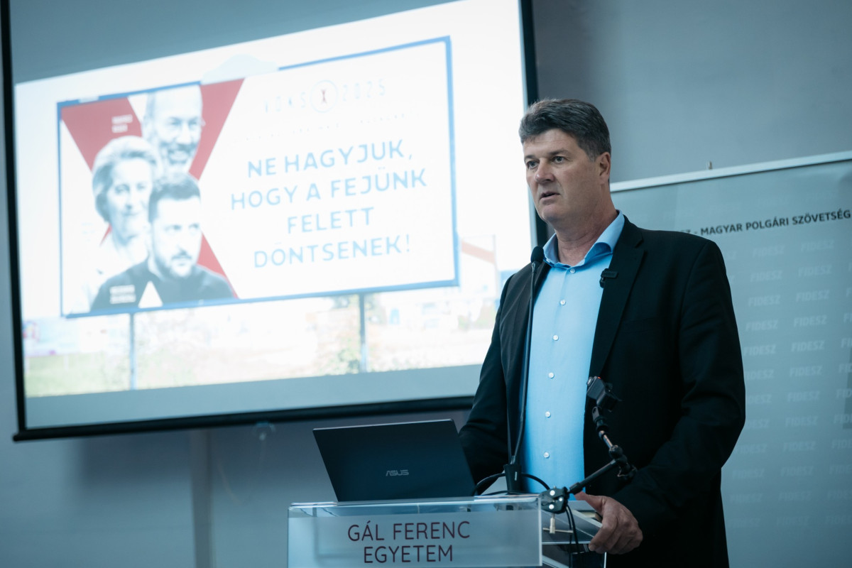 A nagyobbik kormánypárt országjárásának szegedi fórumát megelőző sajtótájékoztatón a politikus azt mondta, Ukrajna uniós csatlakozása kormányzati ciklusokon jócskán túlmutató horderejű ügy, ezért biztatnak mindenkit arra, hogy vegyen részt az erről rendezett véleménynyilvánító szavazáson.