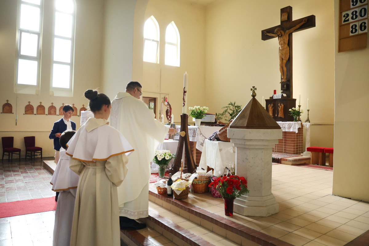 A húsvét viszont Jézus feltámadásáról, az örömről és örök életbe vetett hitről szól. Ilyenkor újra megengedett a bőséges étkek fogyasztása. Ilyen a bárányhús, a sonka, a kolbász, a tojás és a kalács, amelyre áldást kérnek a hívek a templomokban húsvétvasárnap, mielőtt azt elfogyasztják. Ezzel az Isten áldását kérik egyúttal önmagukra is. Nem volt ez másként ma Szegeden, a Móravárosi Szent Kereszt Plébánián sem. Bár itt először csináltunk ilyet, ugyanis én ezt megelőzően Algyőn szolgáltam, ahol ez a szokás hosszú évtizedekre nyúlik vissza, ám úgy gondoltam, hogy megpróbálom mindezt Szegeden is elindítani és azt hiszem, kijelenthetem, hogy sikerrel jártam.