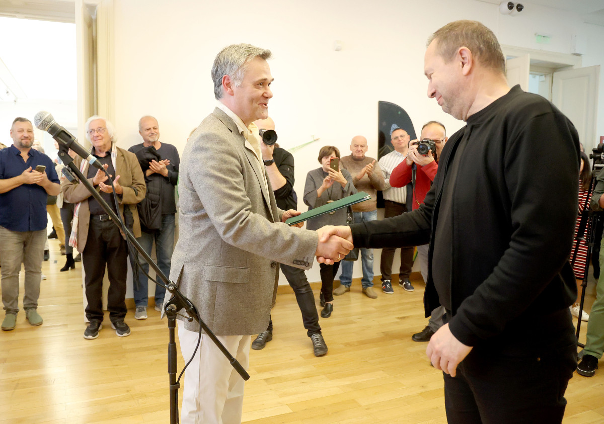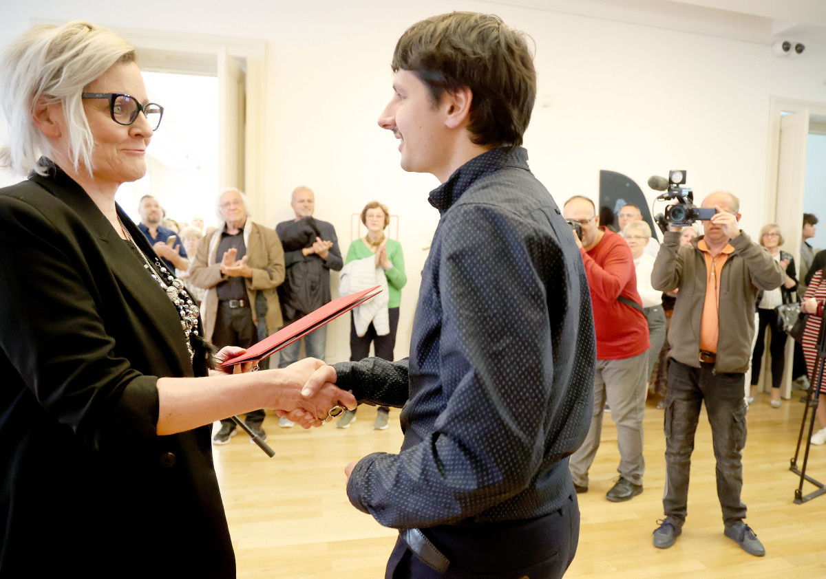 Botos Péter üvegszobrász kapta Kockák fekete hasábbal című alkotásáért a 43. Szegedi Nyári Tárlat fődíját, a Kulturális és Innovációs Minisztérium elismerését, amelyet szombaton adtak át a kiállítás megnyitóján a Reök-palotában.