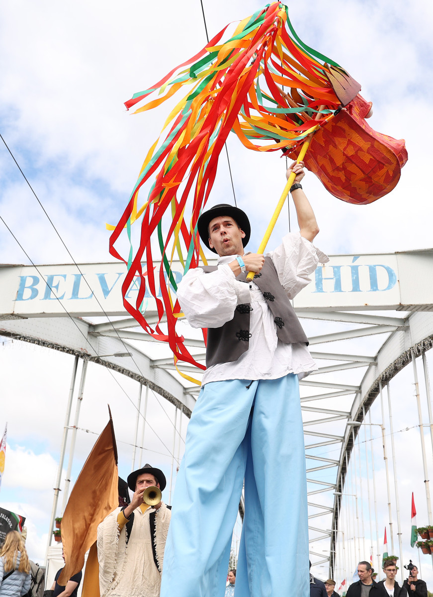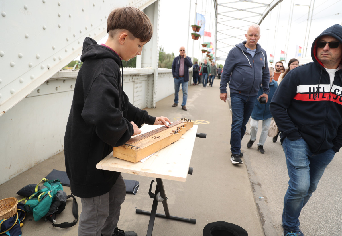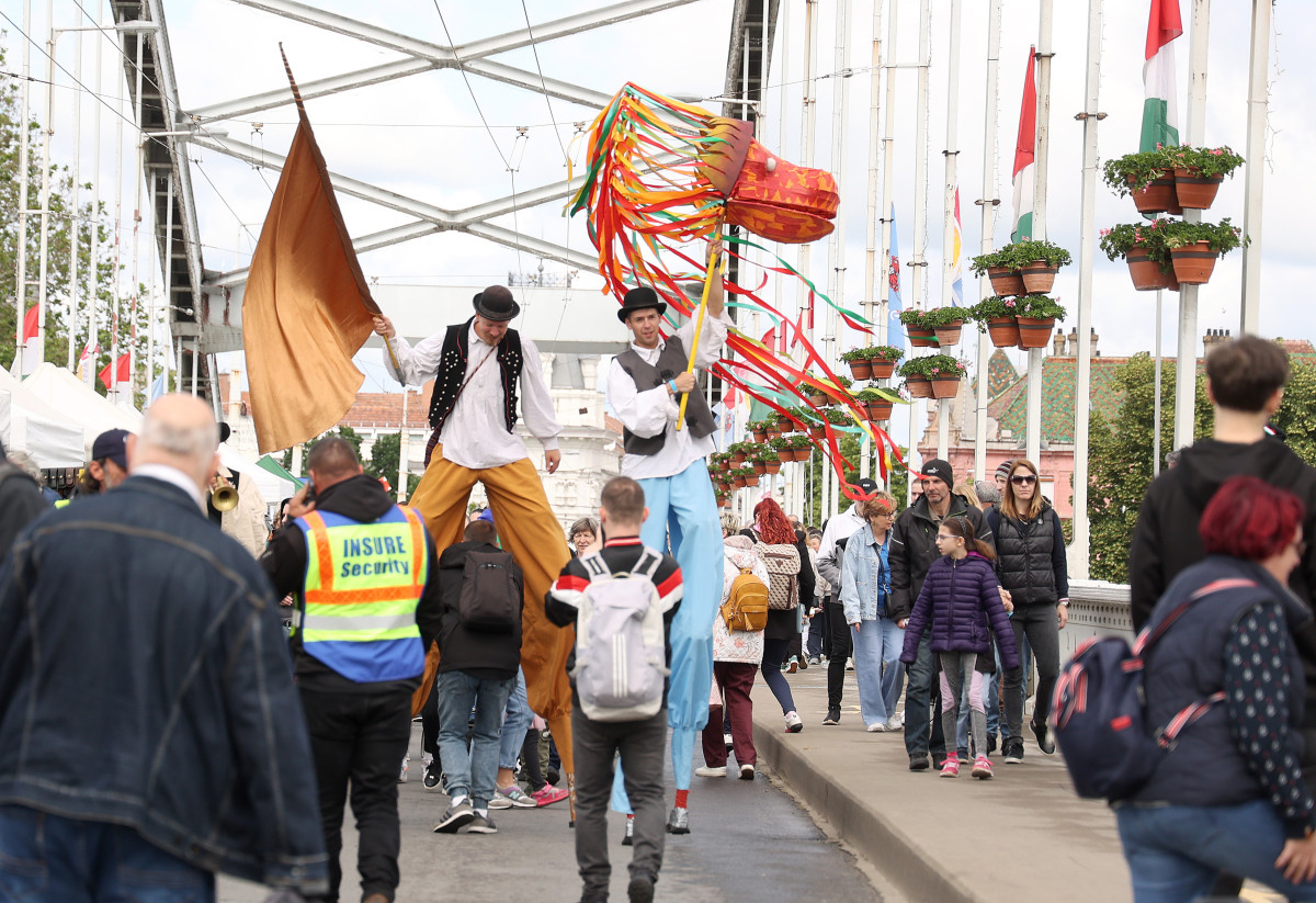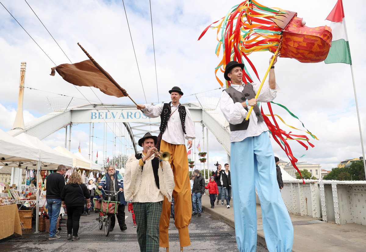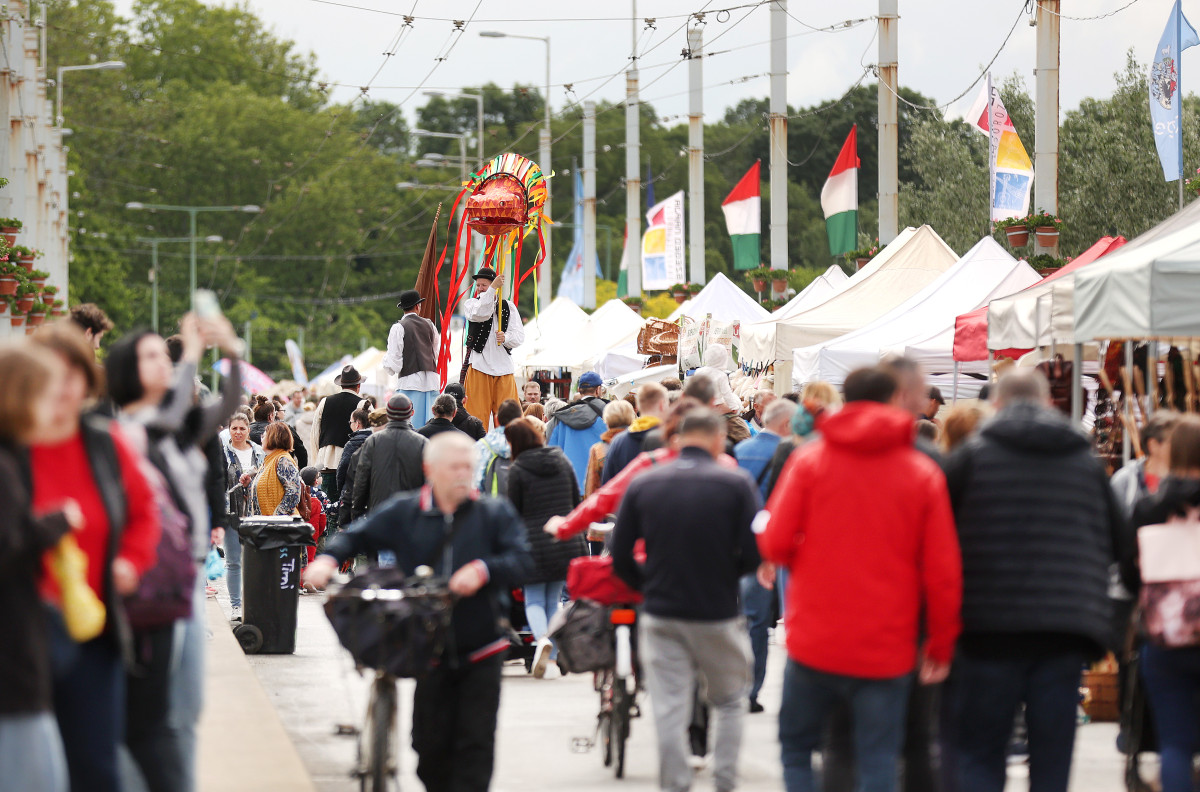 A vásárt gólyalábas felvonulás nyitotta meg, a híd két oldalán pedig utcazenészek, performanszok és látványosságok szórakoztatták a közönséget.