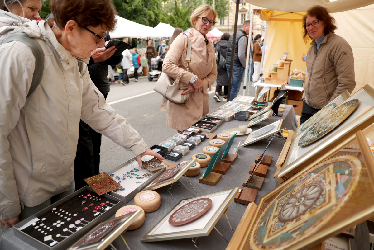 A borús időjárás ellenére már szombat délelőtt hömpölygött a tömeg a hídon, ahol több mint 250 hazai kézműves és iparművész kínálta egyedi, kézzel készült termékeit.