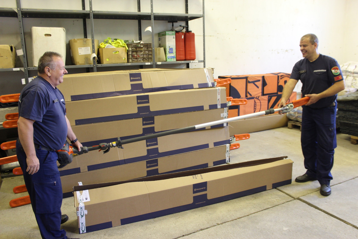 Az eszközbeszerzés keretében megérkeztek az első felszerelések, a viharkárok gyors és hatékony felszámolásához szükséges speciális utánfutók málházatának eszközei közül például a láncfűrészek, magassági ágvágók és kombinált üzemanyag kannák. Ezek mellett az igazgatóság munkatársai gumi tömlőhidakat, akkumulátoros állványos reflektorokat, lábszelepes szűrőkosarakat, terelőkúpokat is átvehettek már az eredményes beszerzési eljárást követően.