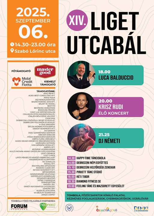 Szeptember 6-án, szombaton ismét megrendezik a Liget Utcabált a Szabó Lőrinc utcán. A rendezvény délután 14:30-tól egészen 23 óráig várja az érdeklődőket színes programokkal, koncertekkel és családi kikapcsolódási lehetőségekkel.