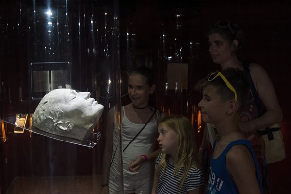 Érdeklődők nézik Ady Endre halotti maszkját a Debreceni Irodalom Házában a Múzeumok éjszakáján 2016. június 25-én. A Hősök, újítók, felfedezők címmel megrendezett rendezvénysorozaton az érdeklődőket 2200 program, egyebek mellett tárlatvezetések, koncertek és filmvetítések várják az ország 400 intézményében. MTI Fotó: Czeglédi Zsolt