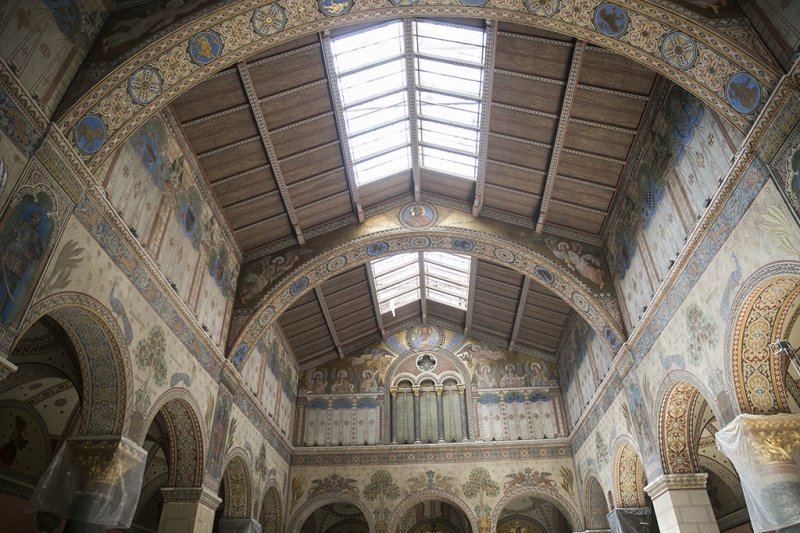 A felújítás leglátványosabb része a II. világháborúban megsérült Román Csarnok rekonstrukciója. A csaknem 900 négyzetméteralapterületű, középkori bazilika belső terét megidéző terem egyedülálló falfestményeinek megújításán mintegy 70 restaurátordolgozott, akik csaknem 2500 négyzetméter falfelületet varázsoltak újjá. A munkálatok során 1500 liter konzerválóanyagot és csaknem 100 kilogramm, különböző színű pigmentet, valamit 5500 aranymetál-lapot, azaz 5,5 kilogramm aranyat használtak fel. Ezek mellett a múzeumi tér korszerű hűtési-fűtési, valamint modern világítási rendszert is kapott.