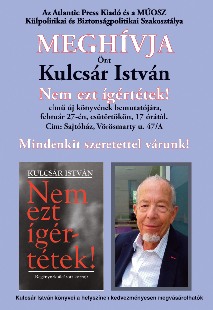 Kulcsár István aranytollas újságíró történelmi regénnyel lepte meg olvasóit. Az önéletrajzi ihletésű művet február 27-én mutatják be a MÚOSZ székházában.