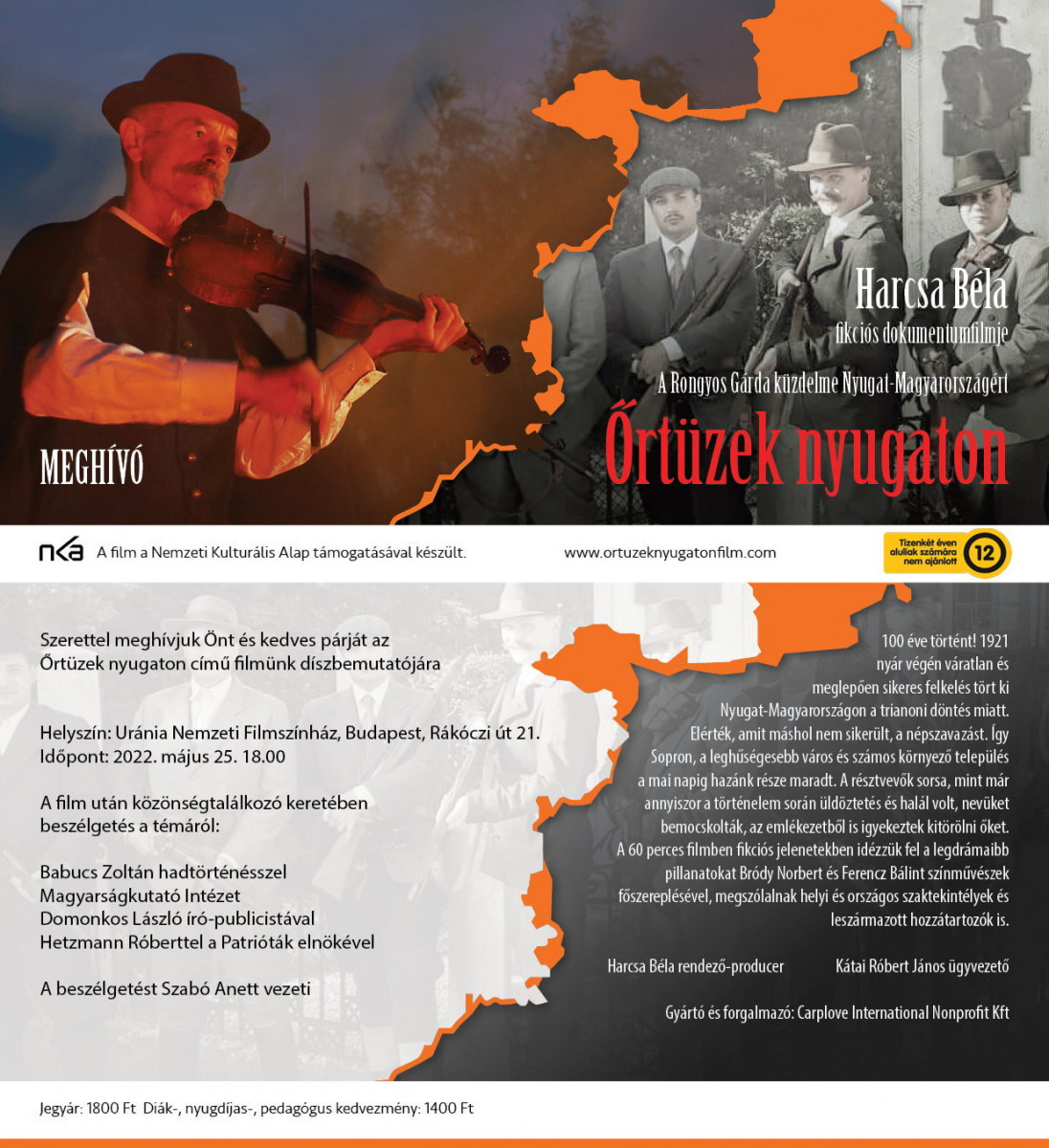 2022. május 25-től látható az art-mozikban Harcsa Béla rendező-producer “Őrtüzek nyugaton” című filmje. Elsőként az Uránia Nemzeti Filmszínházban lesz a mozi változat díszbemutatója, este 18.00 órától.