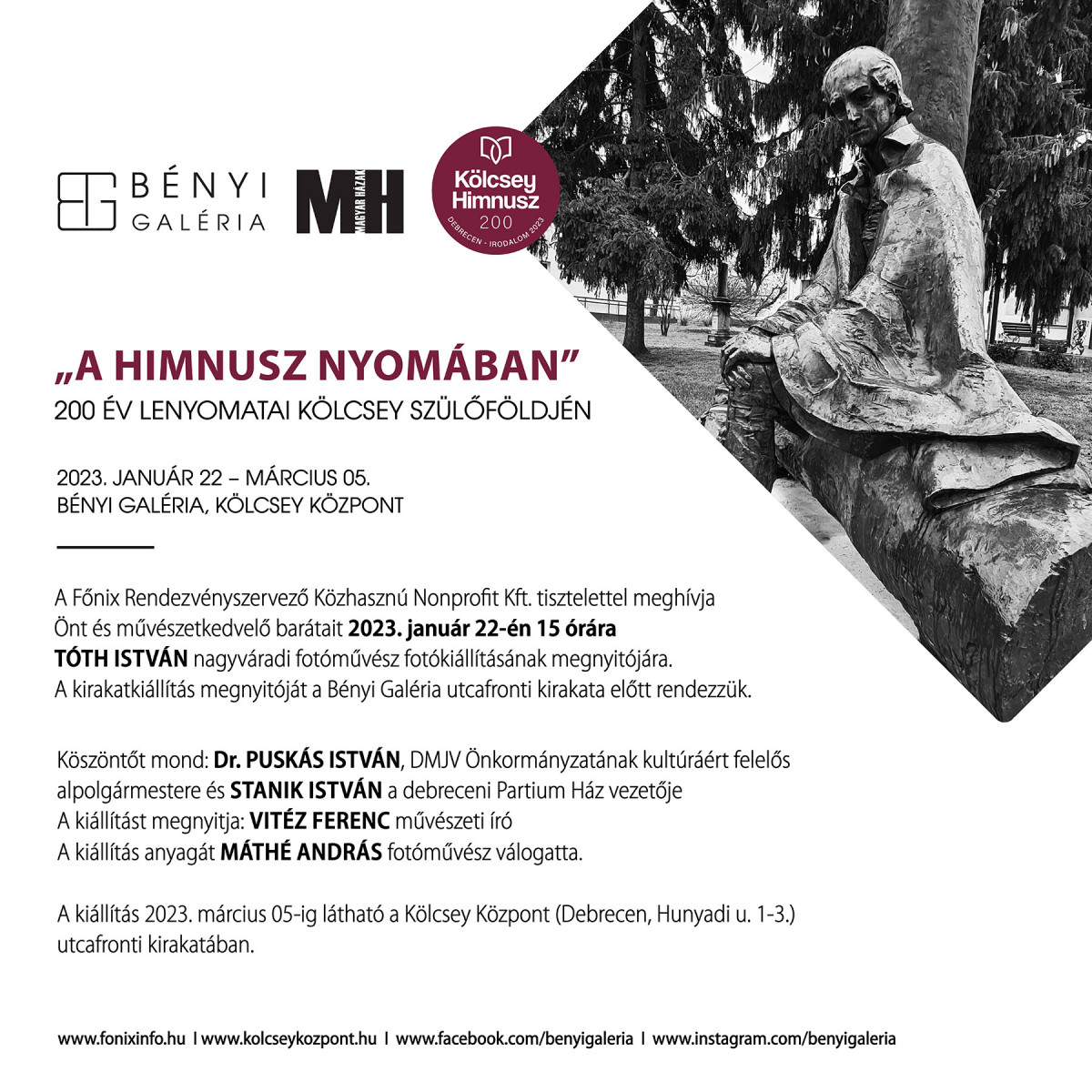 A kiállítás 2023. március 05-ig látható a Kölcsey Központ (Debrecen, Hunyadi u. 1-3.) Bényi Galériájának utcafronti kirakatában.