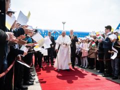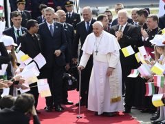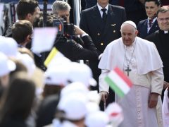 Megérkezett Ferenc pápa háromnapos apostoli látogatásra Magyarországra, repülőgépe pénteken néhány perccel 10 óra előtt szállt le a budapesti Liszt Ferenc-repülőtéren. A pilótafülkéből a landolás után a repülőgép ablakába kihelyeztek egy vatikáni és egy magyar zászlót.