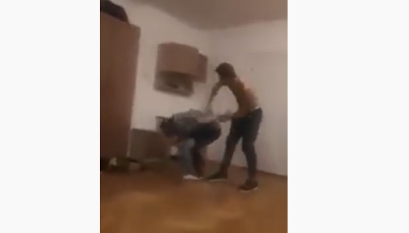 A közösségi médiában megjelent videón az látható, hogy egy fiú a szobatársát üti és rúgja, a videó készítője pedig nevetve követi az eseményeket.