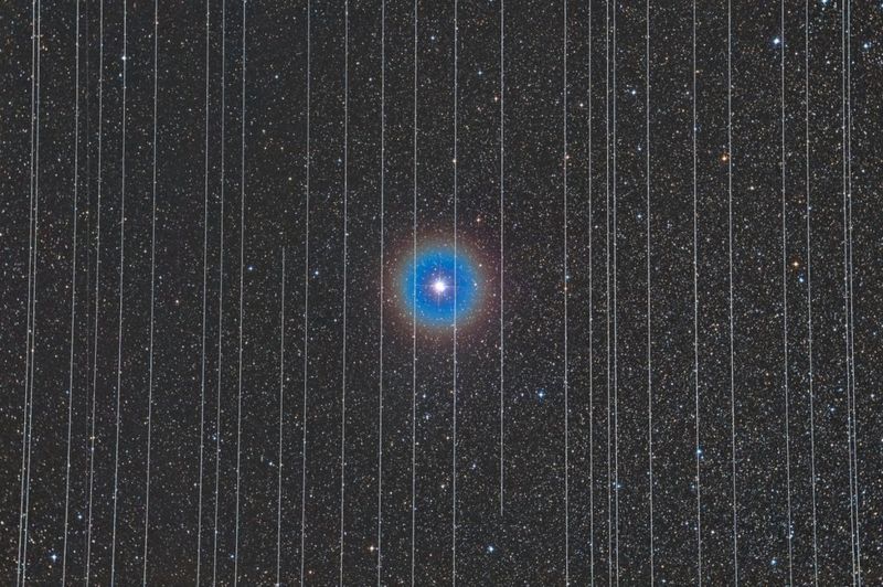 A kommüniké emlékeztet, hogy az expozíciós idővel készített képen a csillagok előterében lévő vékony fehér csíkok valójában kereskedelmi műholdak. Ezek az űreszközök gombamód szaporodnak bolygónk körül. Csak az Elon Musk nevével fémjelzett Starlink több mint tízezer darabot tervez pályára állítani és nem ők az egyetlenek. A műholdak szabad szemmel ugyan nem érzékelhetőek, de kellően nagy számban mérhetően megemelik az égbolt fényességét.