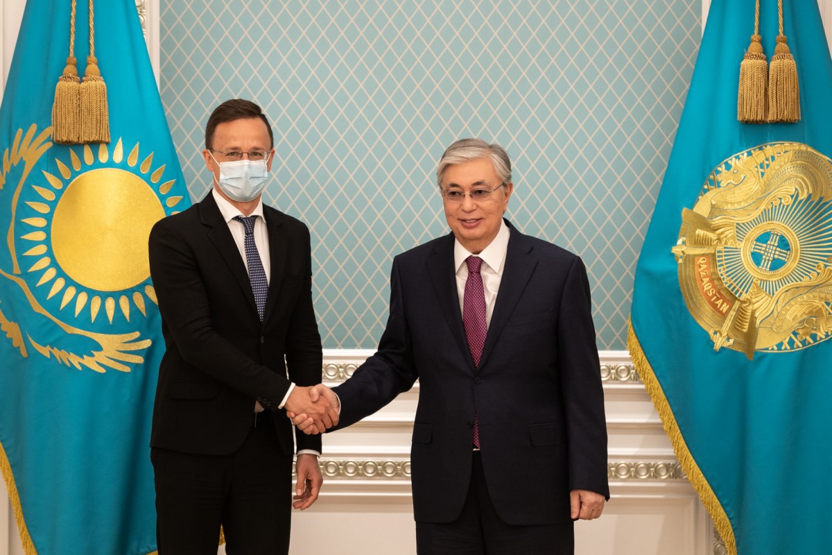 Fotó: Kaszim-Zsomart Tokajevv, Kazahsztán elnöke és Szijjártó Péter (Facebook/Szijjártó Péter)