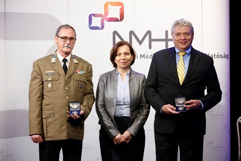 Fotó: Karas Monika, az NMHH elnöke a két Magyari Endre-díjassal: Balogh Jánossal és Bozsóki Istvánnal.