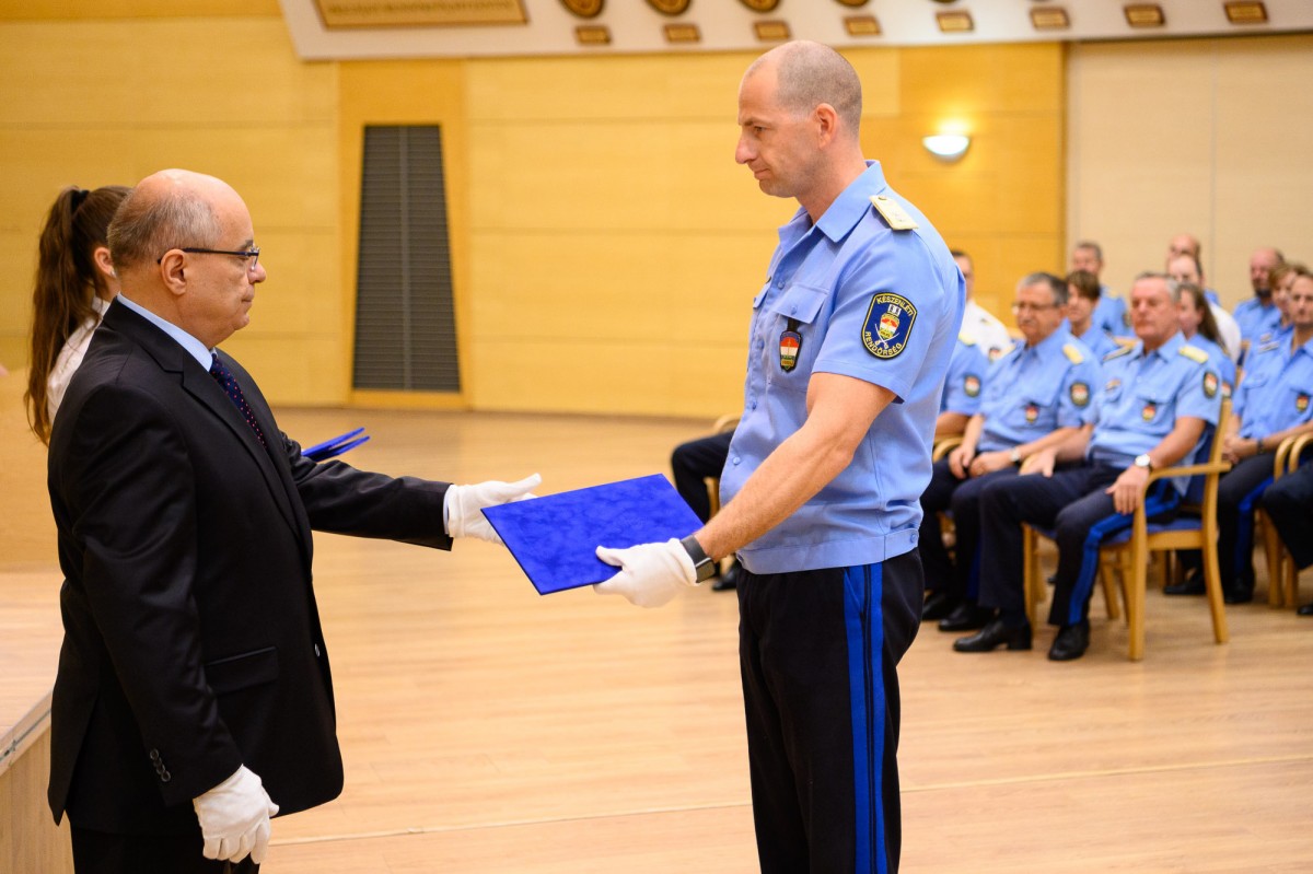 Papp Károly, a Belügyminisztérium belbiztonsági államtitkára adta át a szeptember 1-től hatályos, vezetői kinevezési parancsokat a Rendőrségi Igazgatási Központban tartott ünnepi állománygyűlésen.
