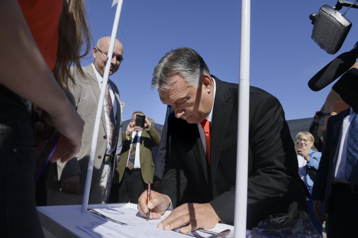 Orbán Viktor beszéde után aláírta saját petícióját (felső kép).