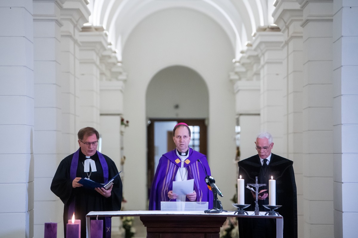 A katolikus, a református és az evangélikus egyház vezetői közösen imádkoztak a koronavírus-járvány áldozataiért és a pandémia elmúlásáért advent első vasárnapján a budapesti Szent István-bazilika altemplomában.