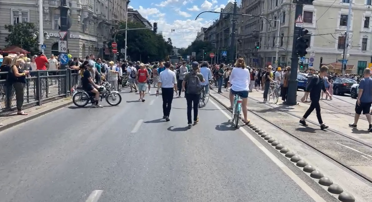 A Budapesti Rendőr-főkapitányság közlése szerint a tüntetők irányonként egy-egy forgalmi sávot foglalnak el. A Jászai Mari téren a rendőrök hangosbemondókon tájékoztatták a gyűlés résztvevőit, hogy szabálysértést valósítanak meg azzal, ha a híd úttestjén és a villamossíneken tartózkodnak. Felszólították őket, hogy menjenek fel a járdára, mert akadályozzák mások szabad mozgását.