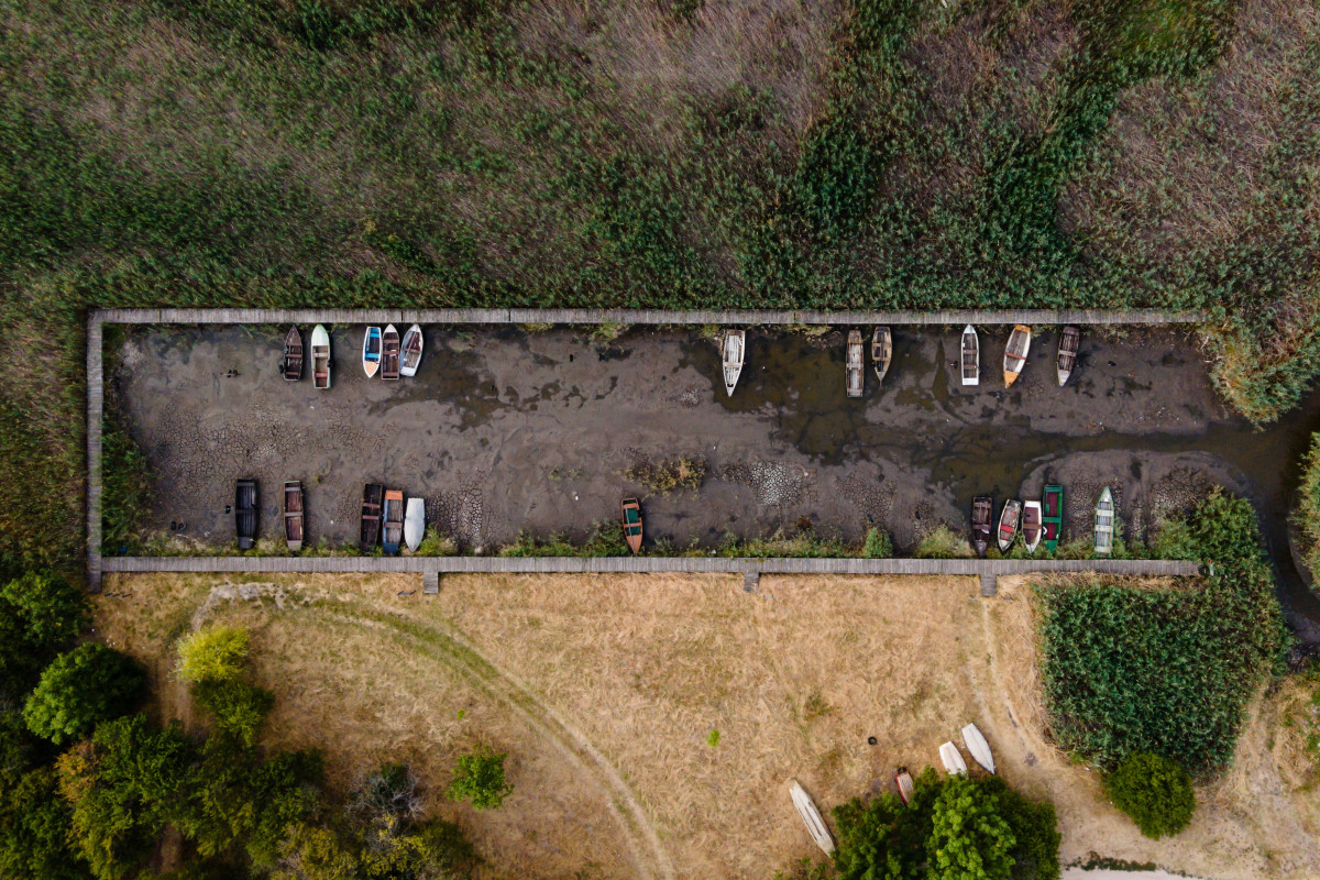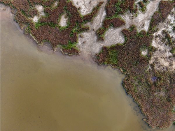 Drónfelvételeket készítettek Pákozd közelében a kiszáradóban lévő Velencei-tóról 2022. július 28-án.