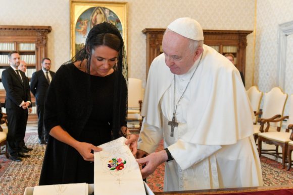 Novák Katalin beszámolt arról, hogy csütörtökön magánaudiencián fogadta a katolikus egyházfő, akivel több mint negyven percen keresztül négyszemközt beszéltek spanyol nyelven. A Szentatya ezt nagyra értékelte és “őszinte hangot” ütöttek meg egymással.