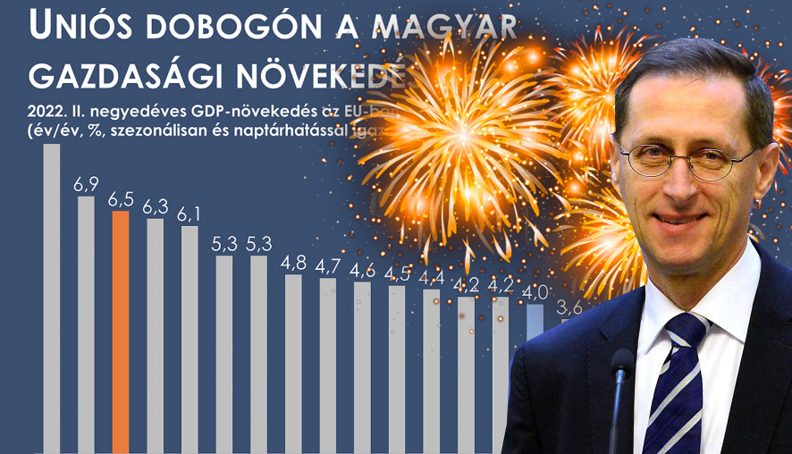 Hazánk gazdasága az elhúzódó háború ellenére is növelni tudta a teljesítményét: a második negyedévben 6,5%-kal erősödött, amely több mint másfélszerese az uniós átlagnak – tette közzé Vara Mihály, pénzügyminiszter közösségi oldalán. Ezzel a magyar gazdaság dobogós az uniós növekedési rangsorban – tette hozzá.