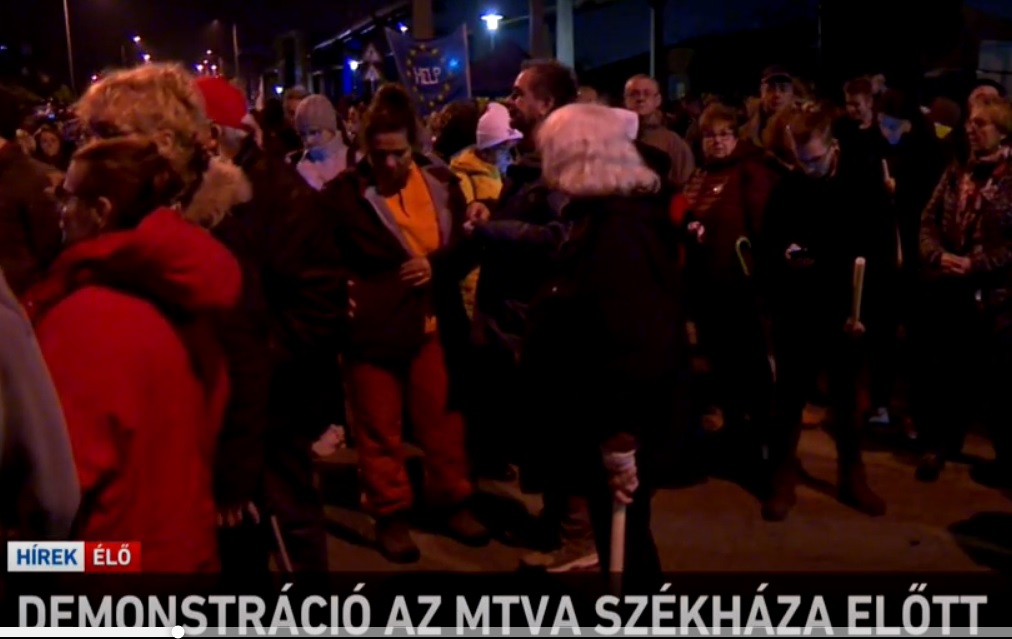 Nem mindennapi esemény tanúi lehettek az M1 nézői péntek este. A köztévének nevezett csatorna ugyanis részletesen beszámolt arról, hogy székházánál tüntetés zajlik.