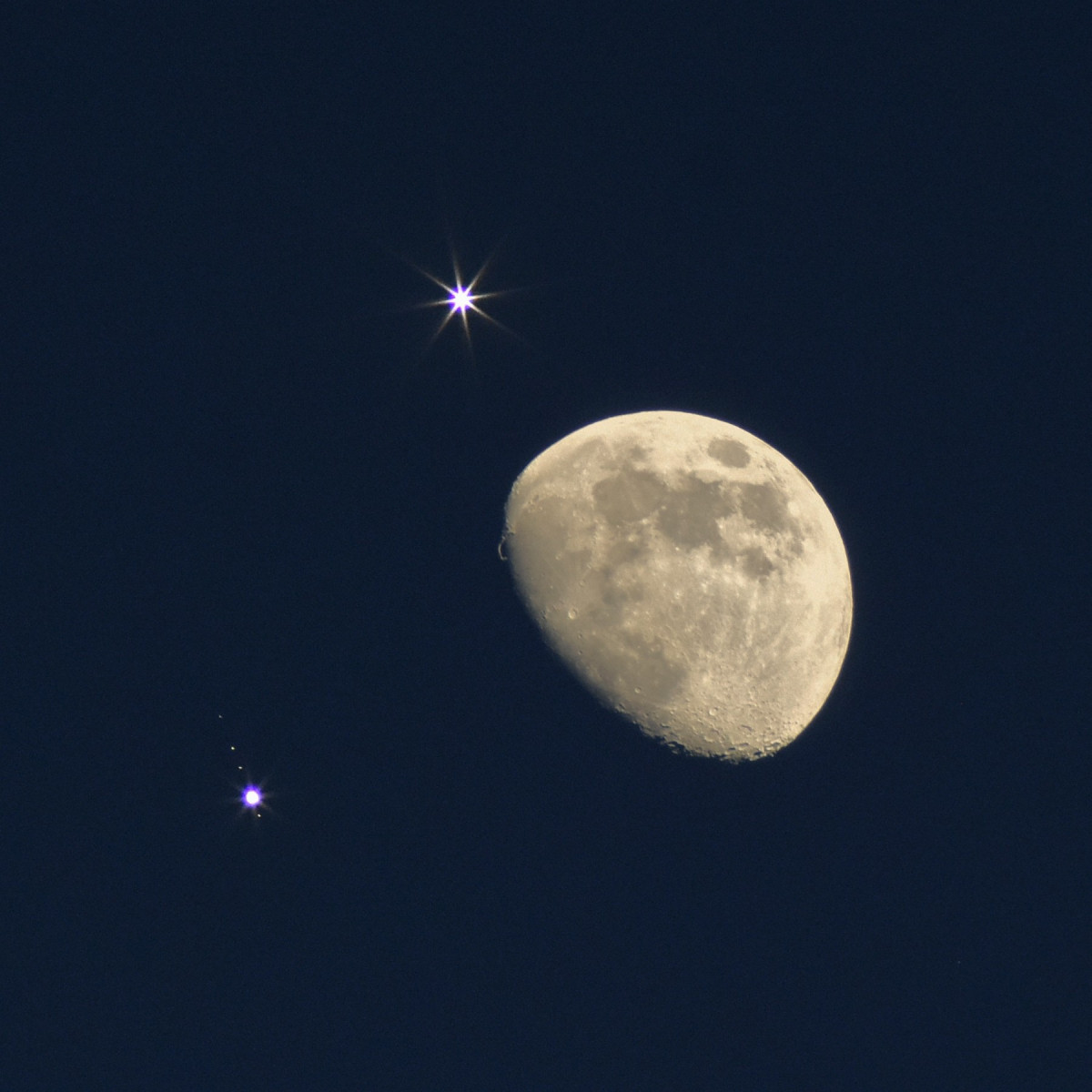 Március 23-án és 24-én az éjszakai égbolt három legfényesebb égiteste, a Hold, a Vénusz és a Jupiter formáz szabad szemmel is könnyen megfigyelhető együttállást az égen – közölte az MTI-vel a Svábhegyi Csillagvizsgáló pénteken.
