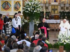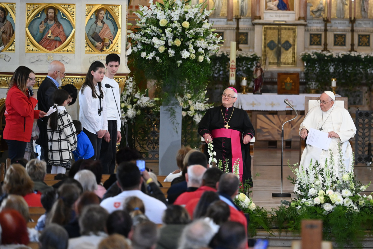A görögkatolikus közösséggel találkozott az apostoli látogatásra Magyarországra érkezett Ferenc pápa szombaton délelőtt, a budapesti Istenszülő oltalma templomban, a Rózsák terén.