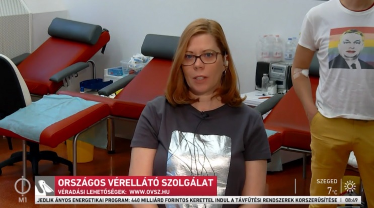 Egy perc után váratlanul megszakította az élő adást a közmédia, miután egy férfi egy Orbánnal és Pride-dal kapcsolatos pólóban megjelent a kamera előtt az Országos Vérellátó Szolgálat munkatársának bejelentkezése közben – vette észre a 444.hu.