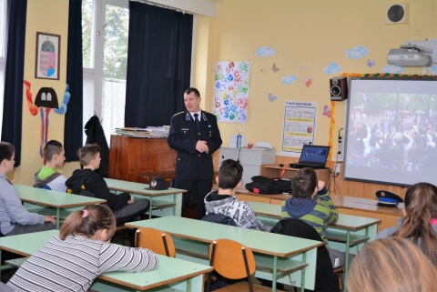 Az internet veszélyeiről tartott előadást egy hajdúszoboszlói általános iskolában Karácsony Béla r. százados iskolai bűnmegelőzési tanácsadó.